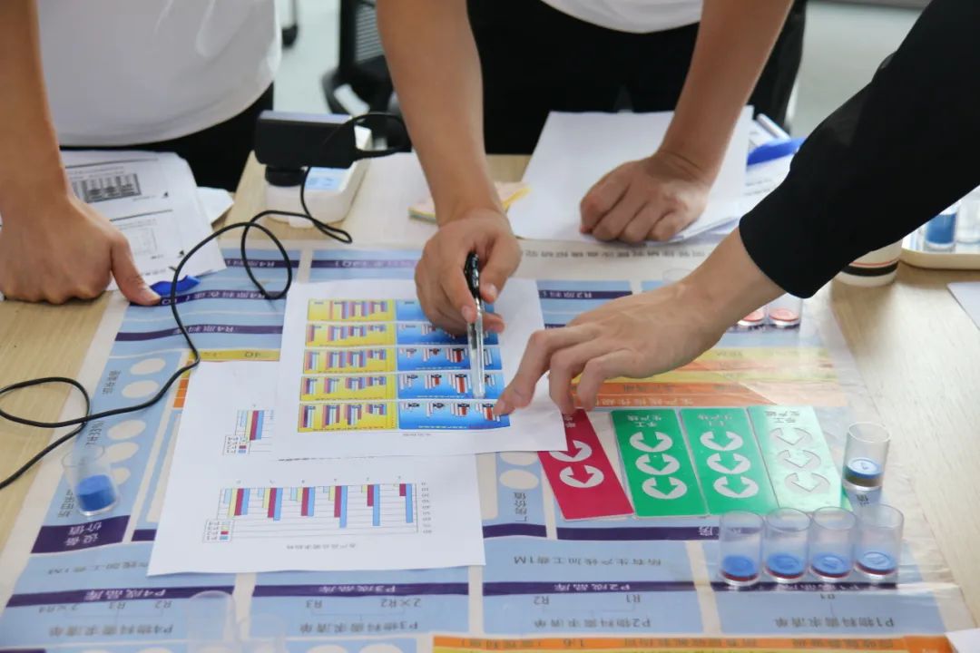 演练中,楚老师带领学员们从第零年进行经营操作,学员们很快掌握了沙盘模拟的操作方法,并且通过三个财年的演练,感受了企业经营的整体流程。每一年度模拟经营结束后,楚老师对当年业绩进行盘点与总结,各小组通过检视决策误区、反省经营成败、梳理管理思路,逐步领悟到企业经营管理的原则。