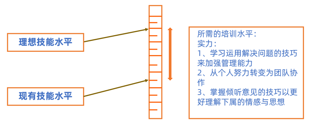美国学者汤姆w戈特将“现实状态”与“理想状态”之间的“差距”称之为“缺口”。如图2,该模型是通过对“理想技能水平”和“现有技能水平”之间关系的分析来确认培训需求的。