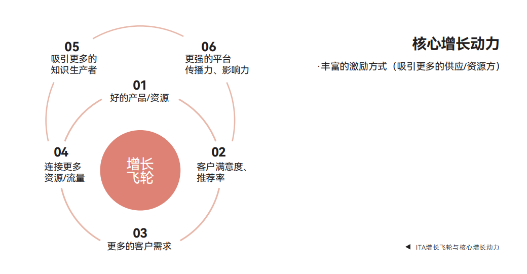 在无限极的变革过程中,ita也逐步开启从“中心化”向“平台化”的转型。作为桥梁的角色,ita通过连接需求、用户及资源三方,塑造平台化学习增长闭环。