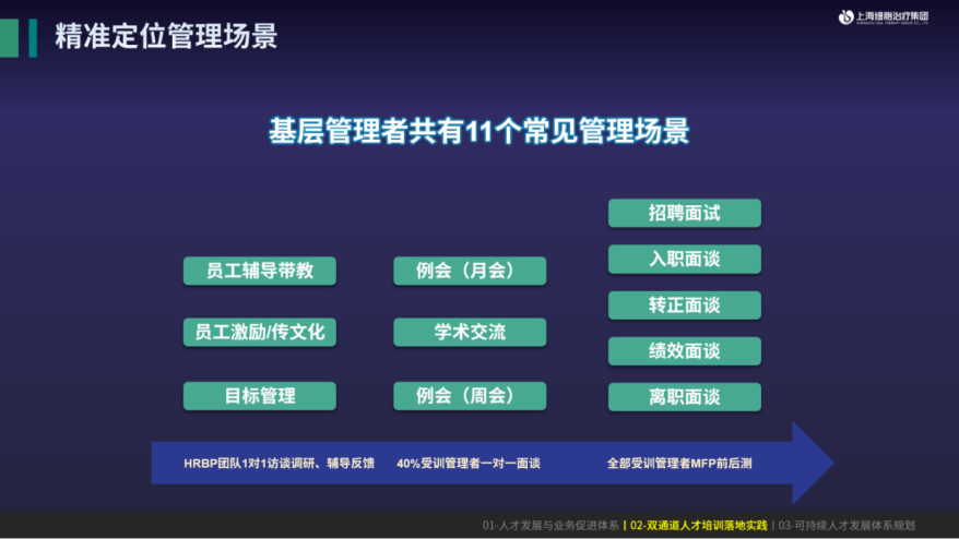 其中,基层管理培养包含了“理论-研学-实践”的过程。项目精准定位上海细胞基层管理者的11个真实管理场景,结合干部“五力”模型,引入教练技术、九游官网入口的文化,帮助基层管好业务、带好团队。对于各个场景下,知识点如何落地到技能,技能如何转化为能力,hrbp首先会自己跑一遍——从小试到中试,只有我们搞通了,会用了,能感受到成功了,才有信心去复制给个业务团队。同时,培训结果会与晋升高度挂钩,最终结业通关答辩未通过的一律不予晋升。